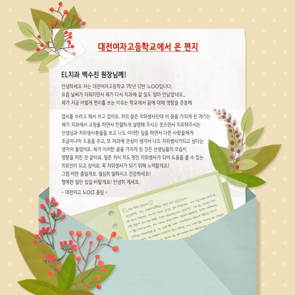 Á¦¸ñ ´ëÀü¿©ÀÚ°íµîÇб³¿¡¼­ ¿Â ÆíÁö!! (To. ¹é¼öÁø ¿øÀå´Ô²²)