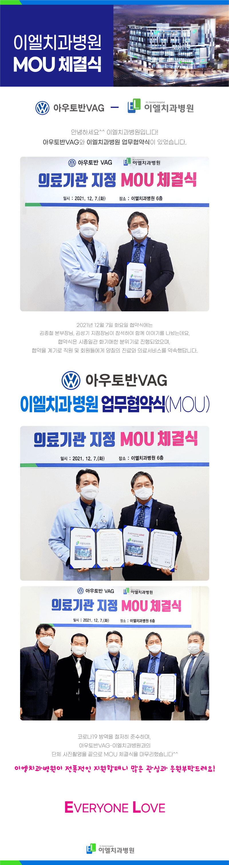 ¾Æ¿ìÅä¹ÝVAG-ÀÌ¿¤Ä¡°úº´¿ø MOU Çù¾àü°á (2021. 12. 7)